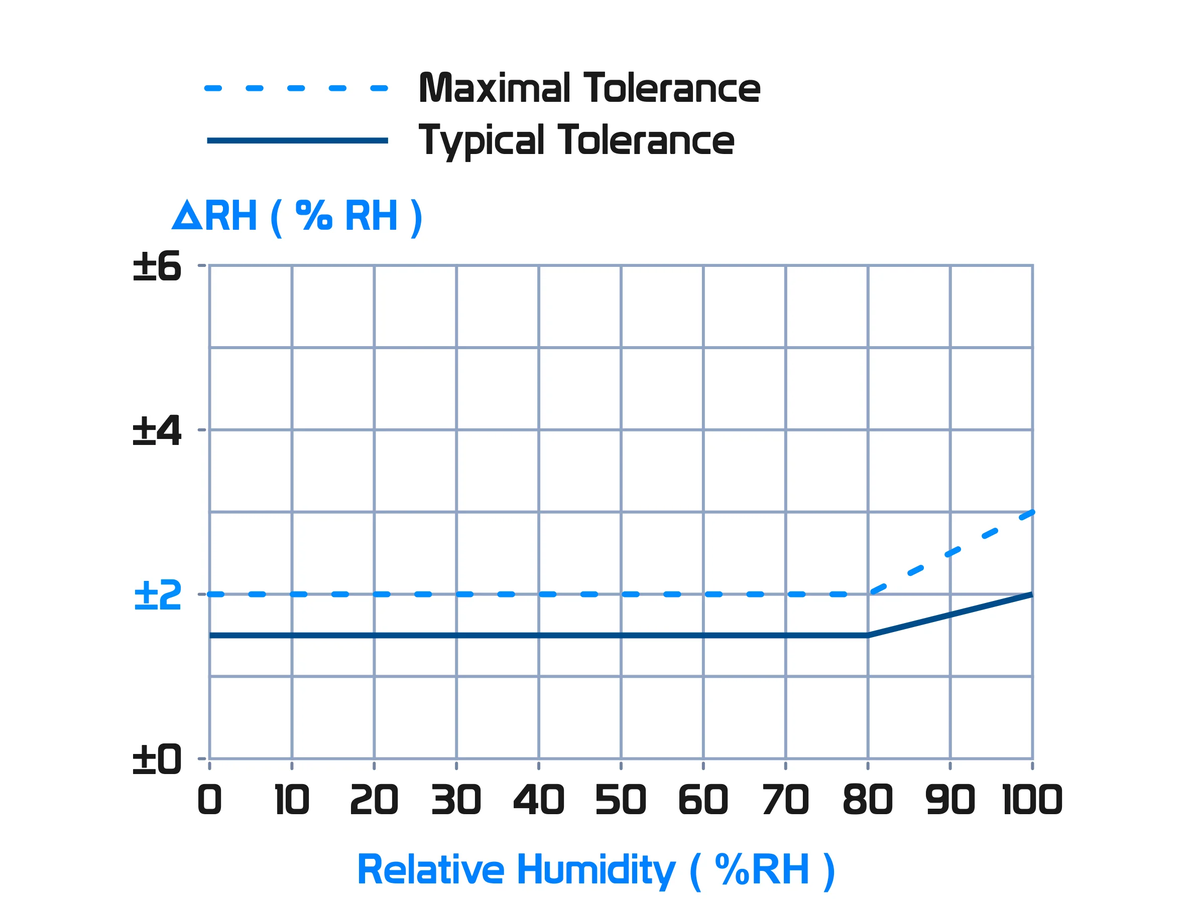 Accuracy Tolerance | ±1.5 %RH for Humidity range 0 to 90 %RH and temperature range +10°C to +60°C See Figures 1 and 2 for more information |