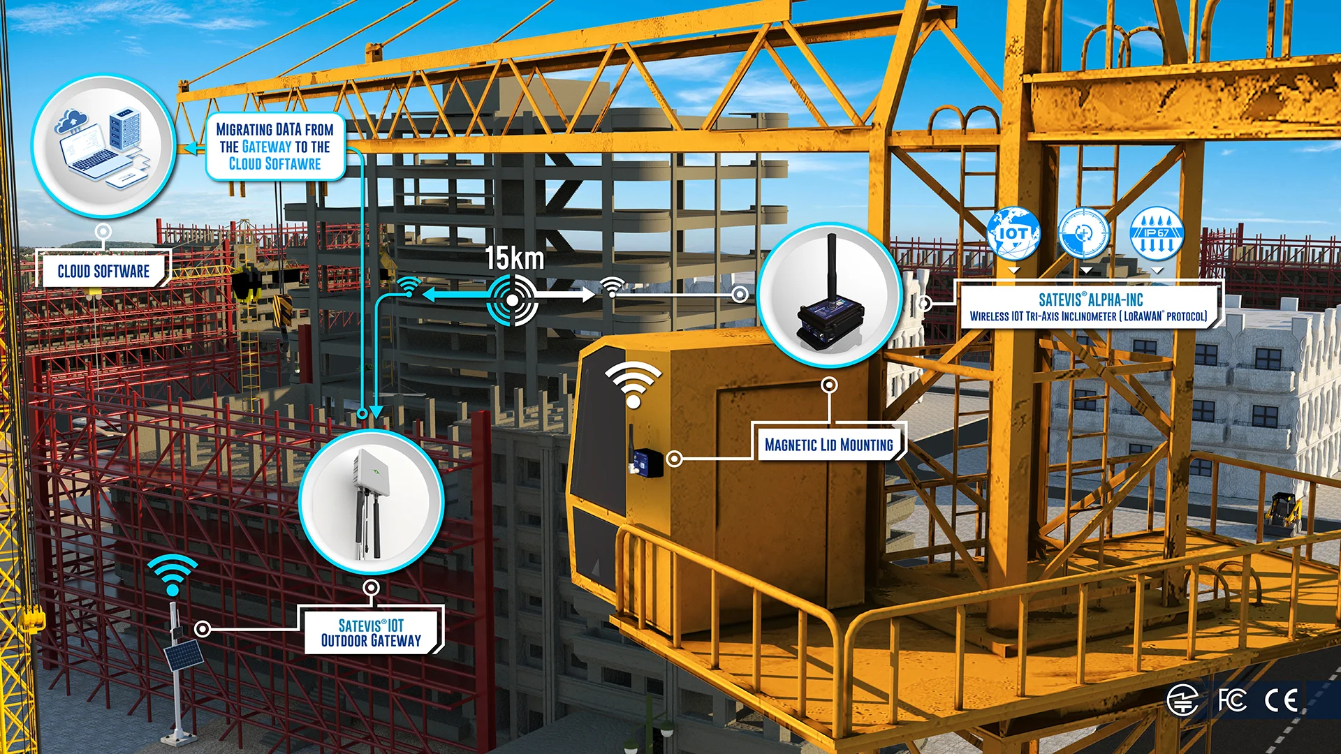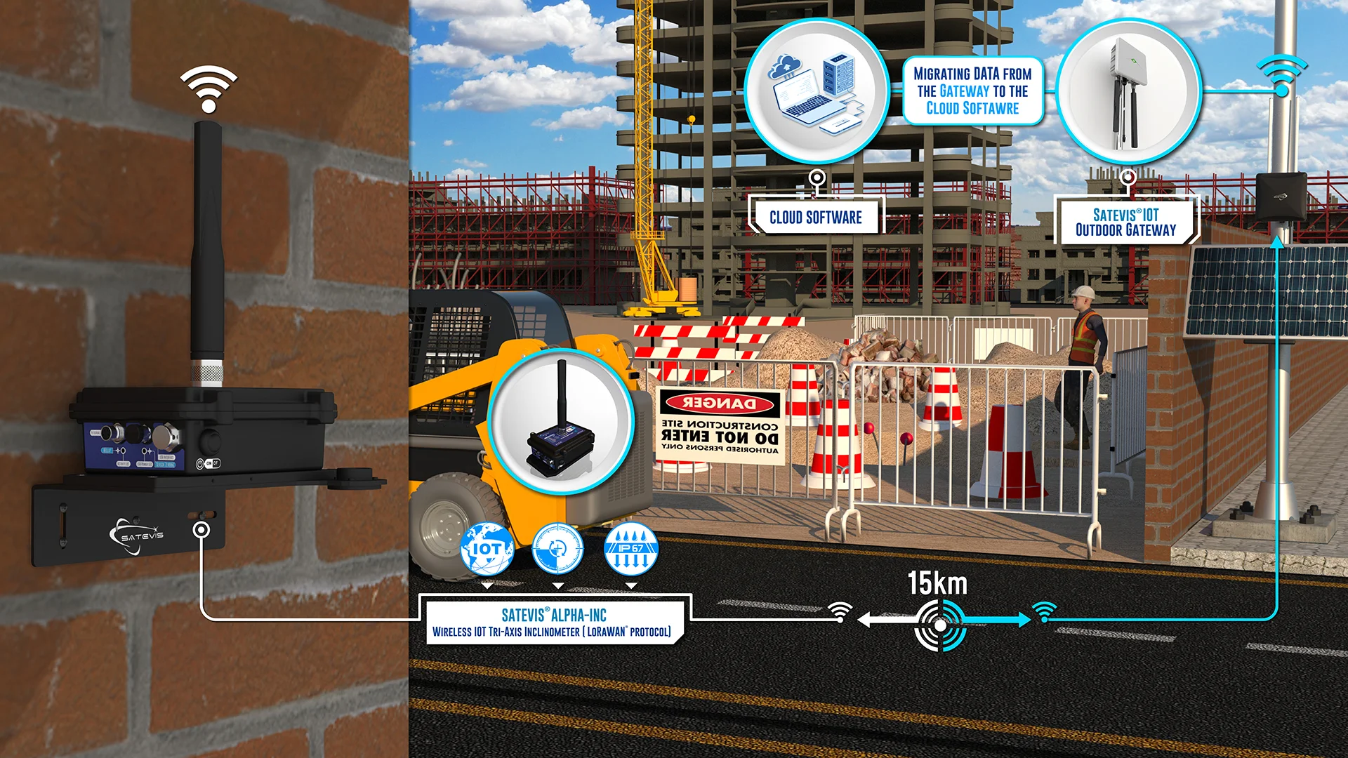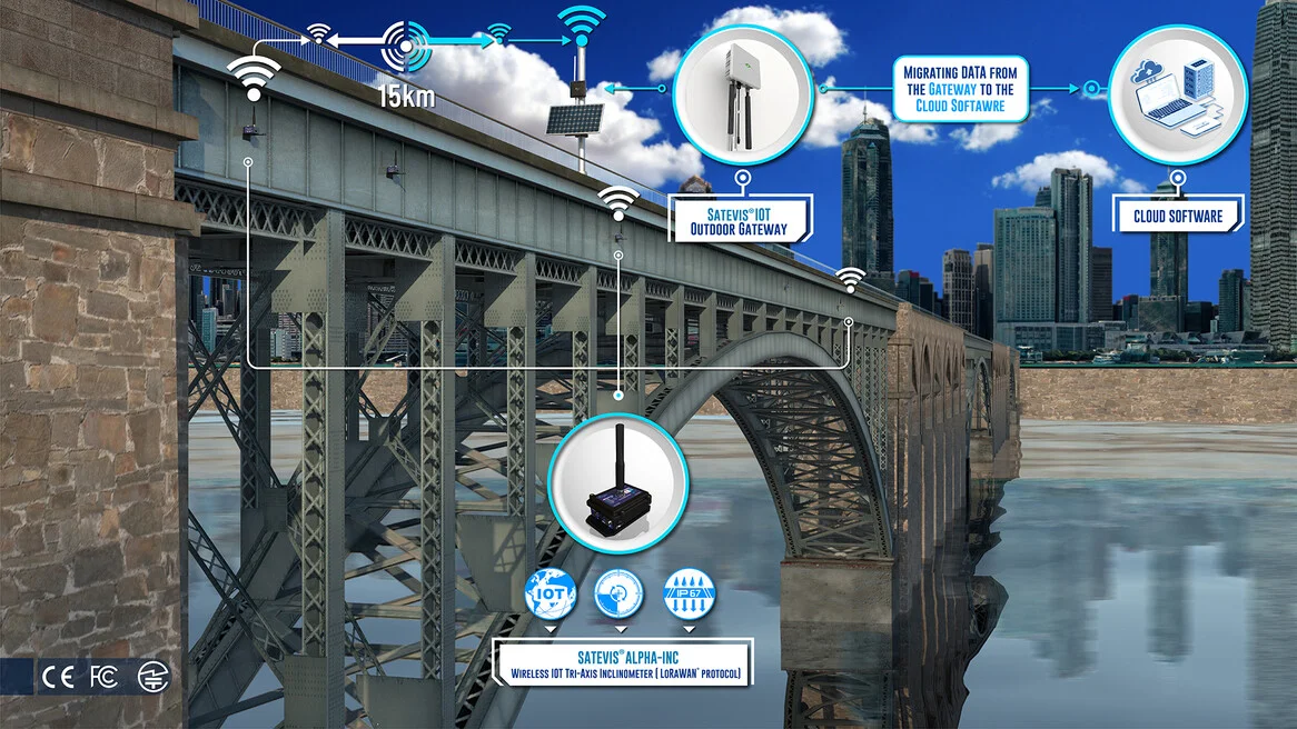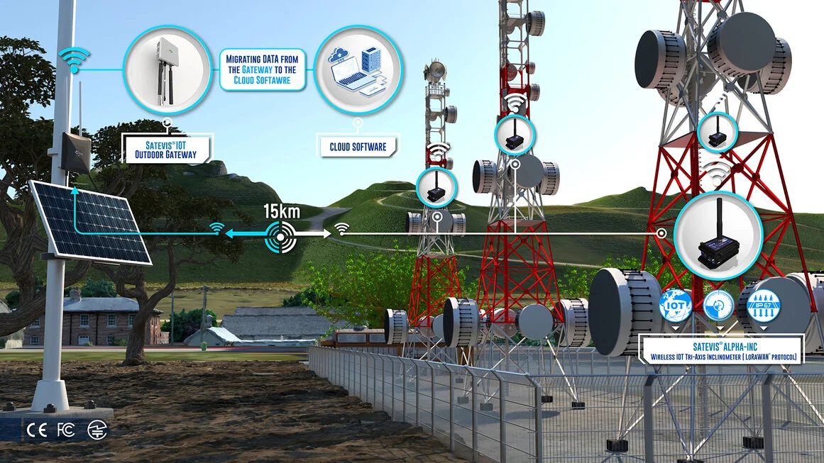 Satevis® Alpha Inc 10T is a wireless Tri-axis inclinometer sensor (scalable range ±10° / ±85°) that integrates the open-standard LoRaWAN® protocol, making it ideal for Structural Health Monitoring (SHM), geotechnical applications, land surveying, and smart infrastructure projects. Designed for scalability and future-proofing, this evolutive device supports sensor fusion (Easy-Sense function), allowing seamless integration with external environmental sensors for expanded functionality. The Satevis® Alpha Inc 10T offers easy integration with third-party cloud platforms (TTN, Chirpstack, Datacake…) or CommonSense®, our proprietary cloud software, ensuring flexible deployment and real-time data insights. With its robust performance and adaptability, the Satevis® Alpha Inc 10T is the smart choice for precision monitoring in critical infrastructure applications. | ||