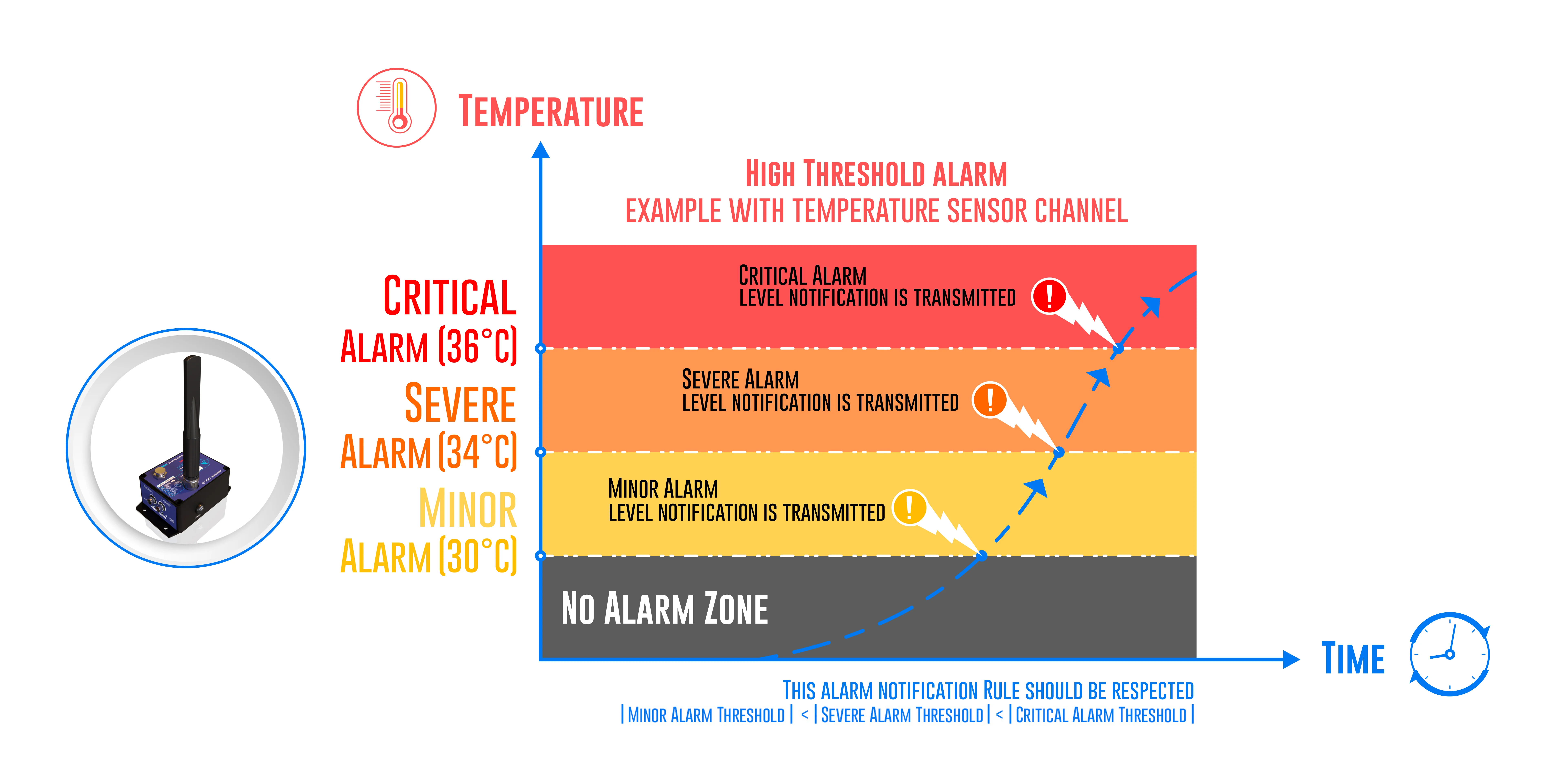 Alarms Management | Three level of Alarms: Critical/Severe/Minor With High/low and Mixed Alarms Thresholds |