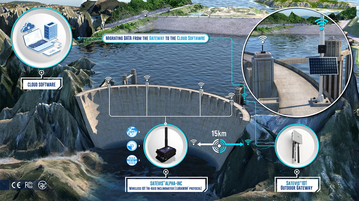 Satevis® Alpha Inc 10T is a wireless Tri-axis inclinometer sensor (scalable range ±10° / ±85°) that integrates the open-standard LoRaWAN® protocol, making it ideal for Structural Health Monitoring (SHM), geotechnical applications, land surveying, and smart infrastructure projects. Designed for scalability and future-proofing, this evolutive device supports sensor fusion (Easy-Sense function), allowing seamless integration with external environmental sensors for expanded functionality. The Satevis® Alpha Inc 10T offers easy integration with third-party cloud platforms (TTN, Chirpstack, Datacake…) or CommonSense®, our proprietary cloud software, ensuring flexible deployment and real-time data insights. With its robust performance and adaptability, the Satevis® Alpha Inc 10T is the smart choice for precision monitoring in critical infrastructure applications. | ||